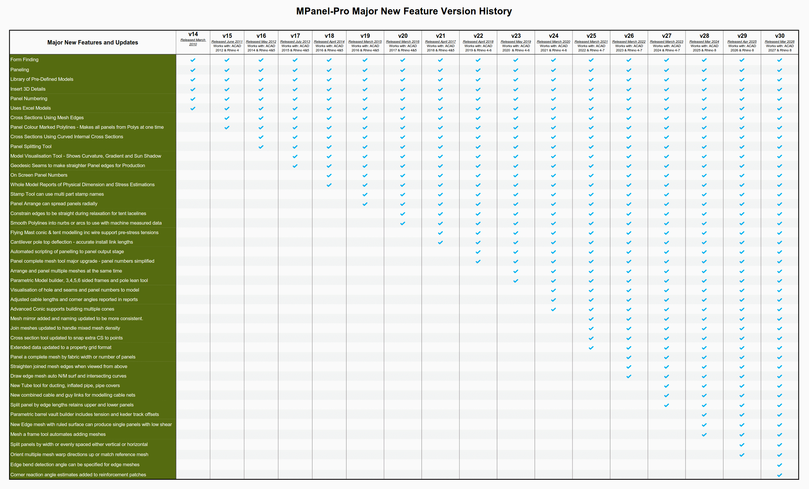 MPanel-Pro is our flagship product providing 3D form finding and 2D patterning Windows software for tension fabric structures designs, working as an add on toolbar in AutoCAD and Rhino.